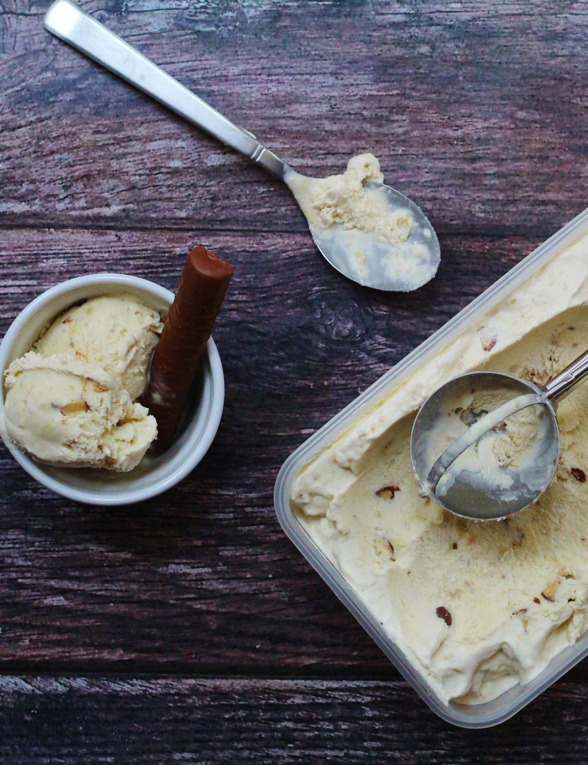 If you want to be adventurous there are loads of ways you can add your own twist to this ice cream. Why not add sweets, chocolate chips or any other chocolate or snack bar pieces?