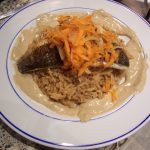 Sea Bass with Tahini Sauce and Saffron Rice