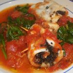 Rolled up Fish Stuffed with Olives in Spinach Tomato Sauce